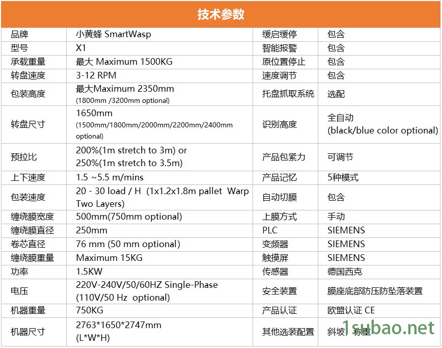 小黃蜂的所有電氣部件都使用西門子、西克、魏德米勒等優質品牌。