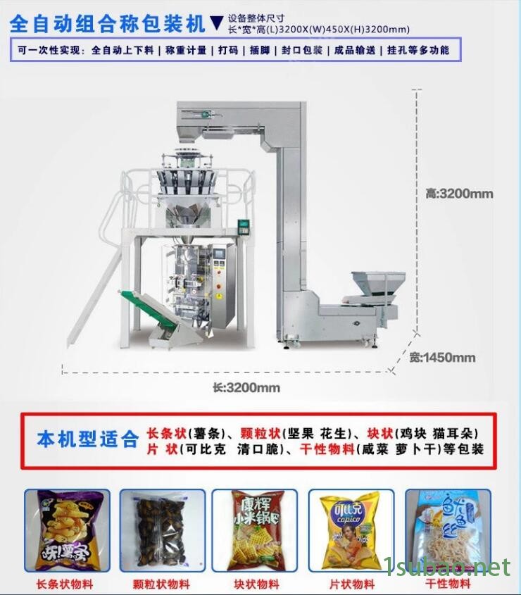 適合要求計量精度高及易碎的散裝物體的包裝,如:膨化食品、鍋巴、果凍、糖果、開心果、蘋果片、水餃、湯圓、朱古力、小五金件、藥材等。