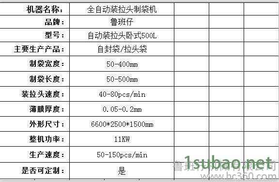 東莞市魯班仔機械有限公司主要產品有:全自動裝拉頭制袋機、高速臥式貼骨制袋機,高速異形袋制袋機,高速切袋機,骨條擠出機等。公司研發部是擁有11年以上的行業經驗研發團隊,變頻器等核心部件均為日本,臺灣,西德原裝進口。結合德國,臺灣的恒張力技術原理,使機械的性能穩定,速度大大提高。魯班仔優越的品質贏得了廣大客戶的信賴。
