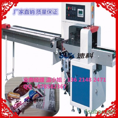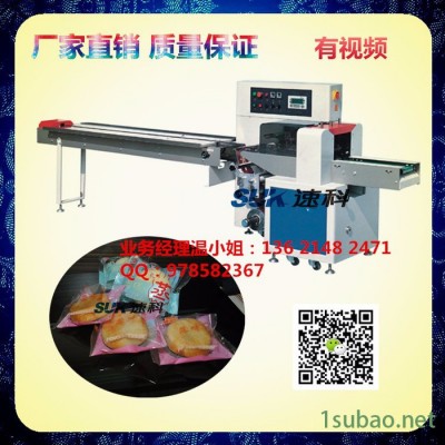 速科SK-400BD包裝機(jī)械--蛋糕紙碟自動(dòng)封口包裝機(jī)此款枕式包裝機(jī)適用于包裝薯片、花生、雪餅、餅干、餅干、蛋黃派、巧克力、面包、方便面、藥品、日用品、工業(yè)零件、紙盒或托盤等各類有規(guī)則物體的包裝。