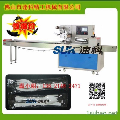 奶粉湯匙自動套袋包裝機,塑料勺子多功能自動封口包裝機械SK-250B,此款枕式包裝機適用于包裝薯片、花生、雪餅、餅干、餅干、蛋黃派、巧克力、面包、方便面、藥品、日用品、工業(yè)零件、紙盒或托盤等各類有規(guī)則物體的包裝。